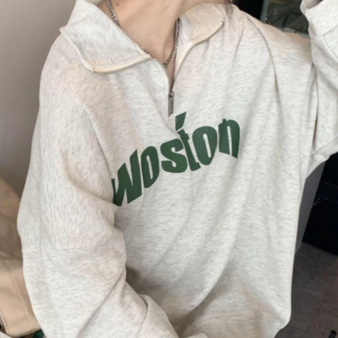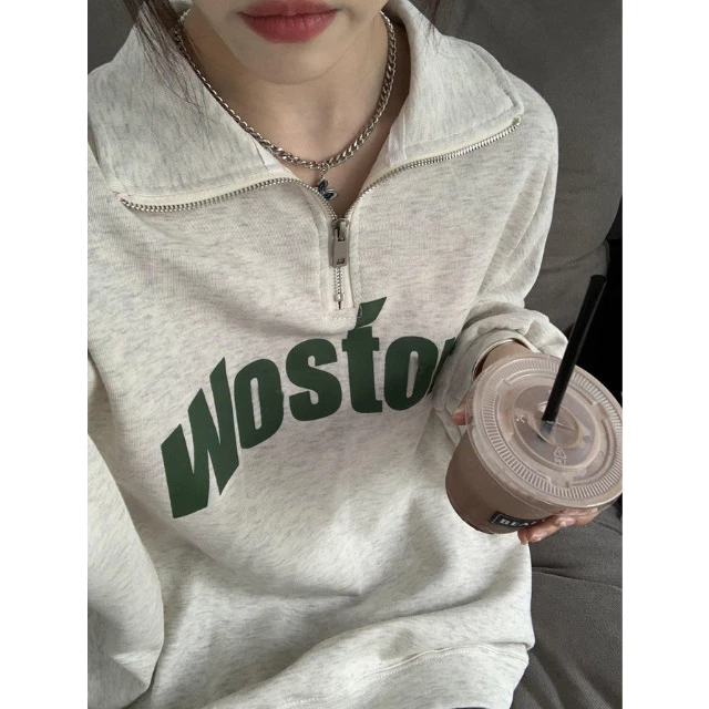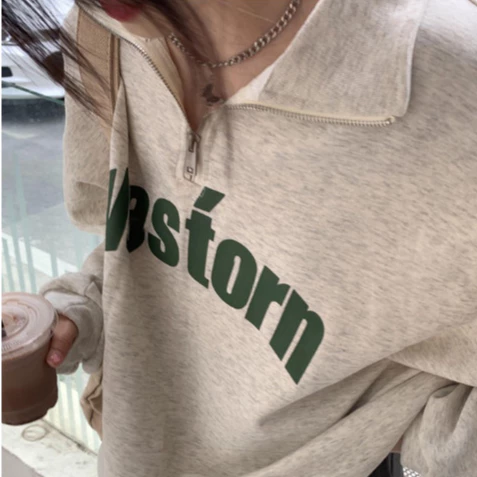 Áo Sweater Cổ Polo Dáng Rộng In Chữ Phối Khóa Kéo Thời Trang Mùa Thu Cho Nữ